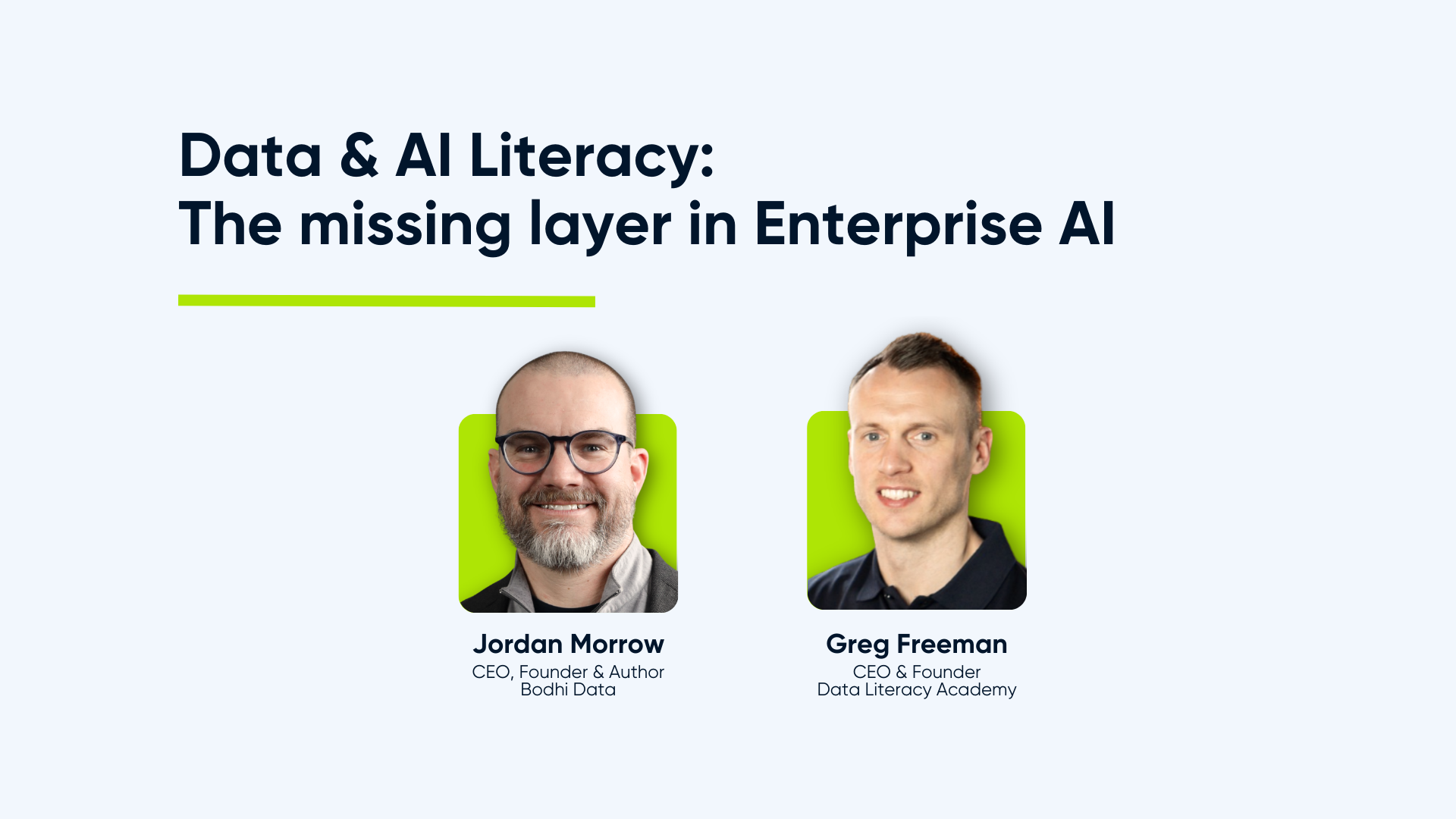 Speakers: Greg Freeman (CEO & Founder, Data Literacy Academy) and Jason Foster (Founder & CEO, Cynozure)
